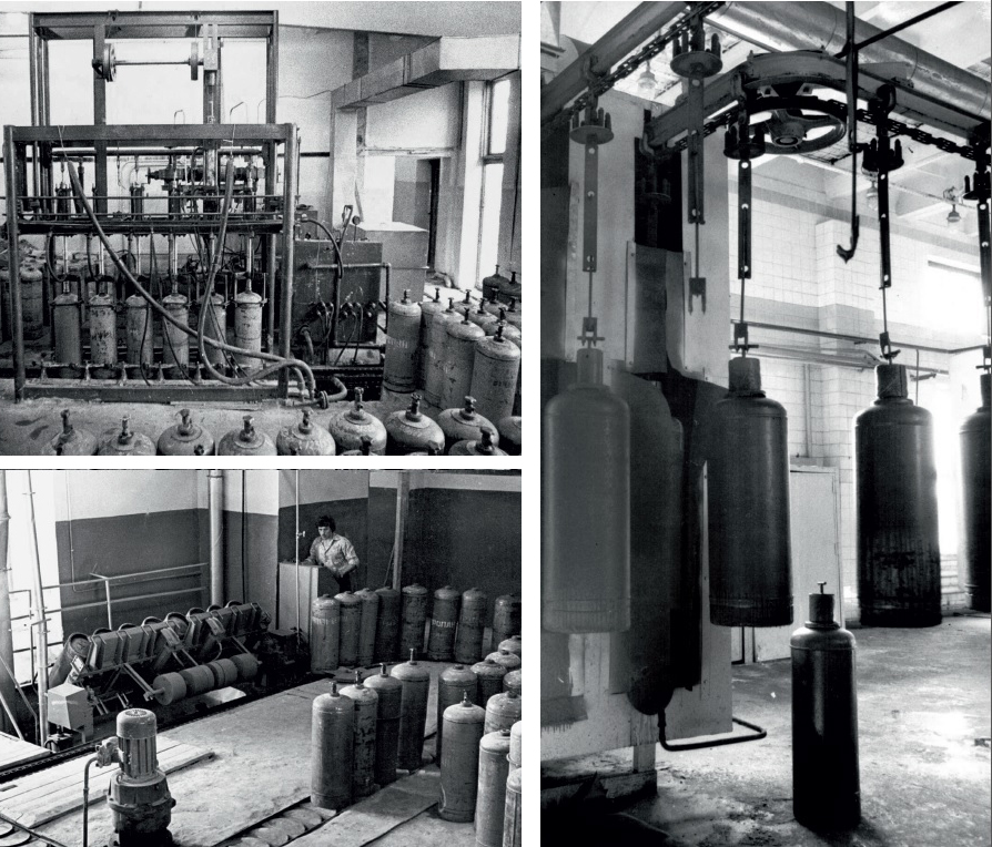 Почти все разработки подобного рода были направлены на автоматизацию тех или иных рабочих процедур. В качестве примера можно назвать специализированную линию для окраски баллонов и «покрасочные» станки для нанесения на баллоны столь привычной надписи «ПРОПАН». Также в начале шестидесятых была построена технологически надежная установка для отвинчивания (и завинчивания) запорных устройств баллонов (УОВ), конструкция которой позволяла быстро и без особых усилий заменить неисправный кран. Отдельно для проведения испытаний новых изготовленных баллонов был разработан стенд гидроиспытаний газовых баллонов (СГБ).